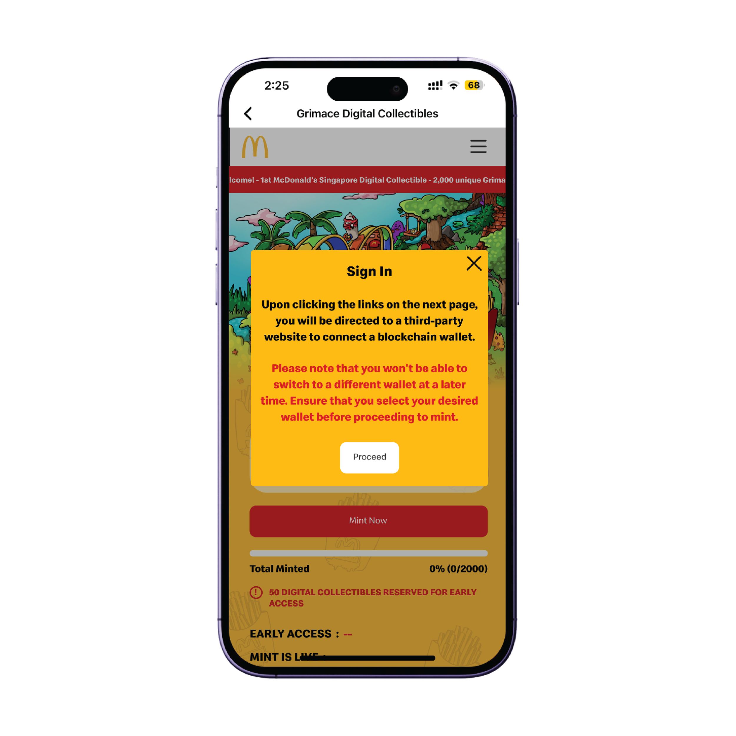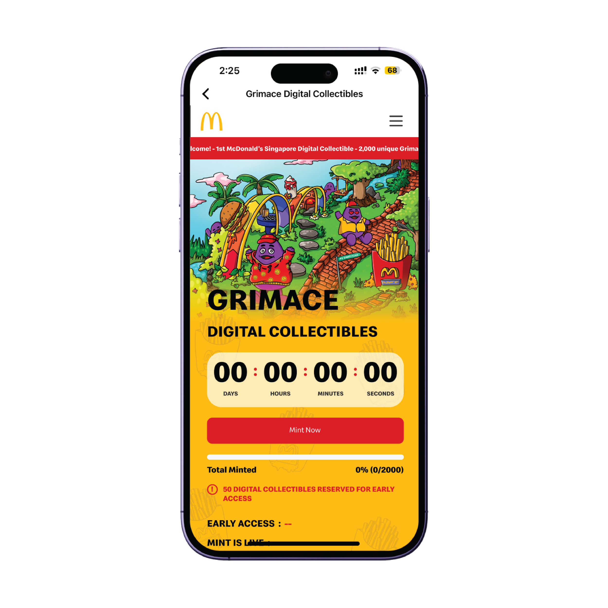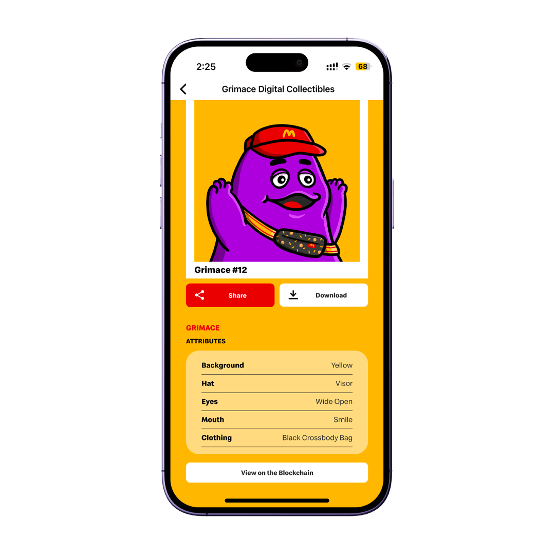 1. Notification: Over 1 Million existing users on the McDonald’s app will receive a notification on their mobile devices from the McDonald’s team once the minting goes live. Upon receiving the alert, users can access the McDonald’s app and will notice the Grimace Digital Collectibles button on the homepage. For individuals who are not current app users, they will be required to download the app from either the App Store or Google Play.