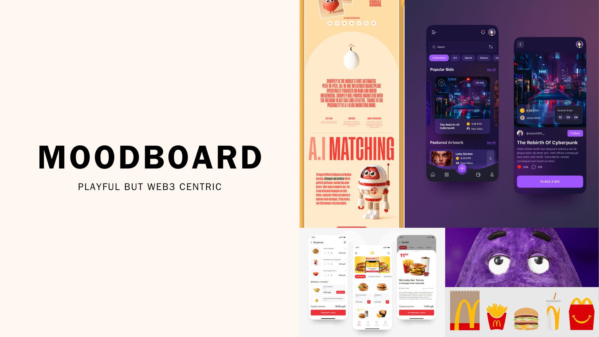 We chose McDonaldland characters for its nostalgia and history which juxtaposes with the immutability of blockchain. Diving deep into each character and looking at trends of popular PFP art, Grimace was identified for: