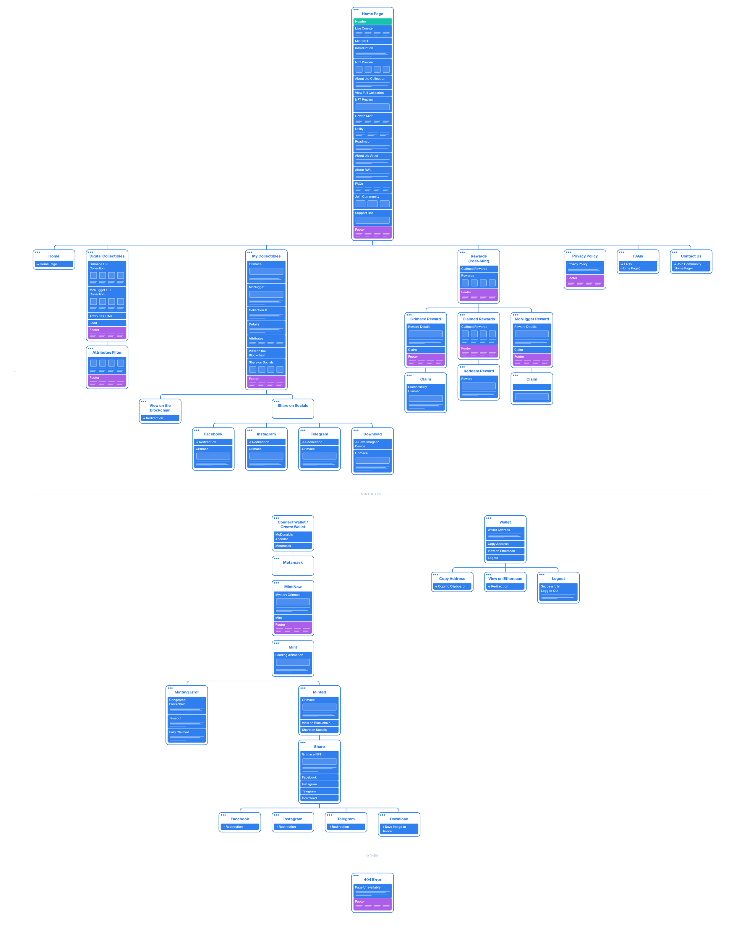 Finally, a sitemap was created with a structure comprising five sections: Homepage, Collectibles, Perks Page, Terms of Use, and Privacy Policy.