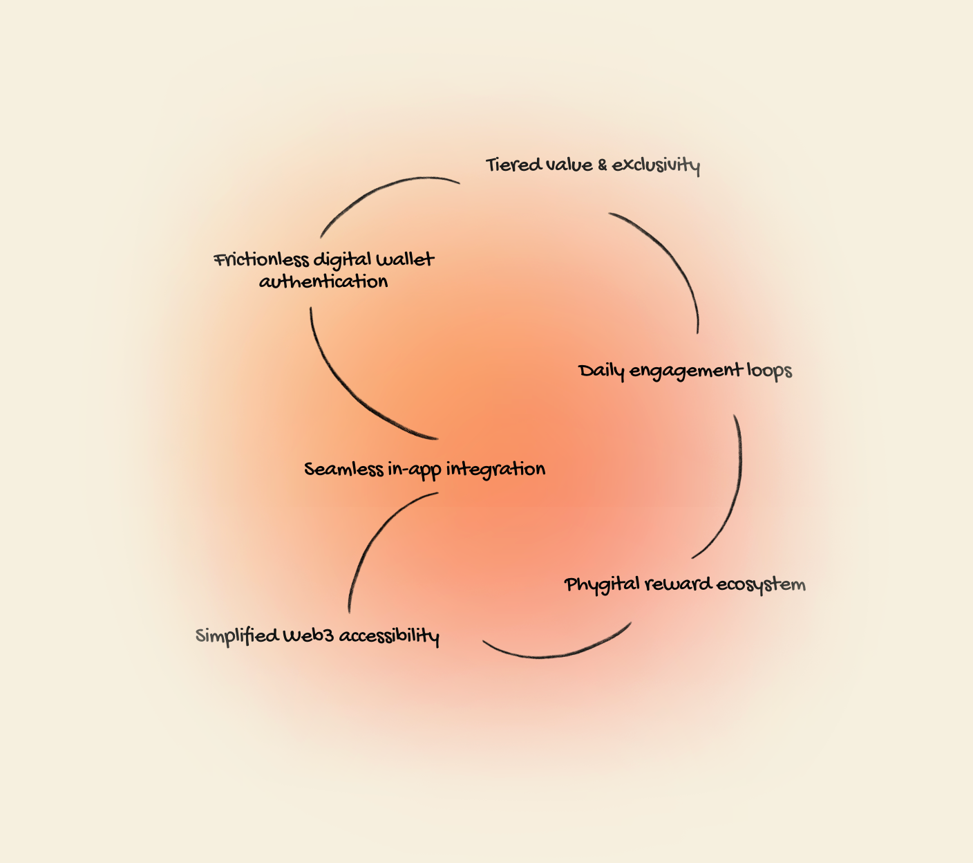 These observations led me to explore whether it was possible to create a seamless in-app metaverse experience that could transform passive app users into active brand participants through play, personalization, and rewards—bridging digital and physical experiences while maintaining accessibility for non-crypto-native audiences.