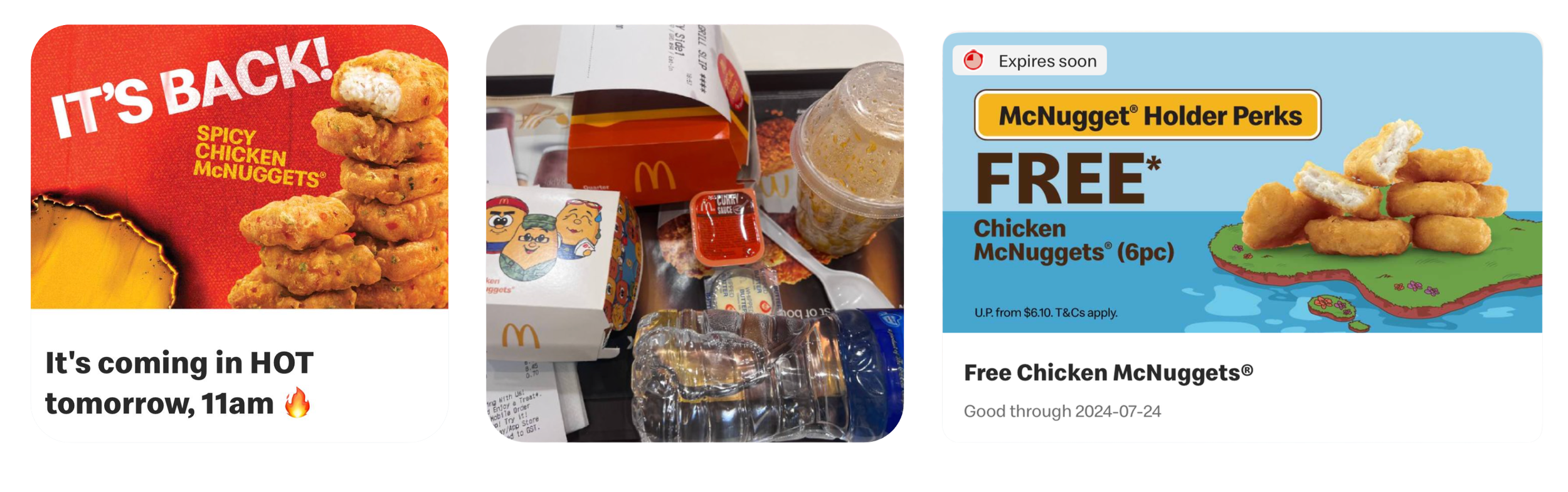 McDonald's month-long McNugget campaign run alongside My Happy Place created an opportunity to introduce the McNugget Digital Collectible within My Happy Place. User feedback indicated desire for more discoverable content tied to future campaigns, while Grimace holder Telegram discussions revealed strong demand from users who missed the initial drop and wanted another opportunity to join the collector community.