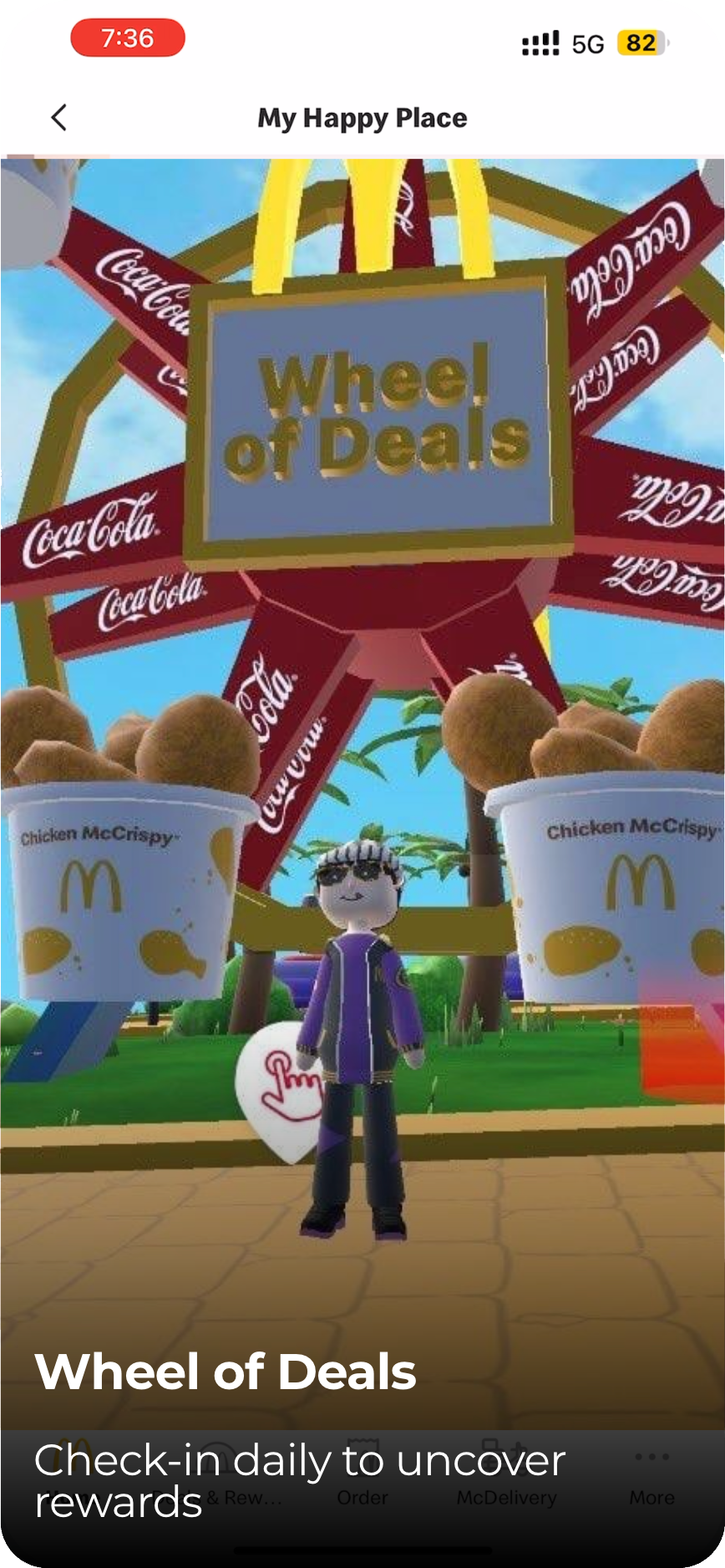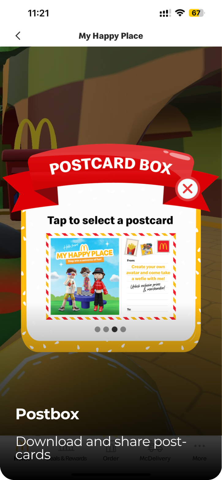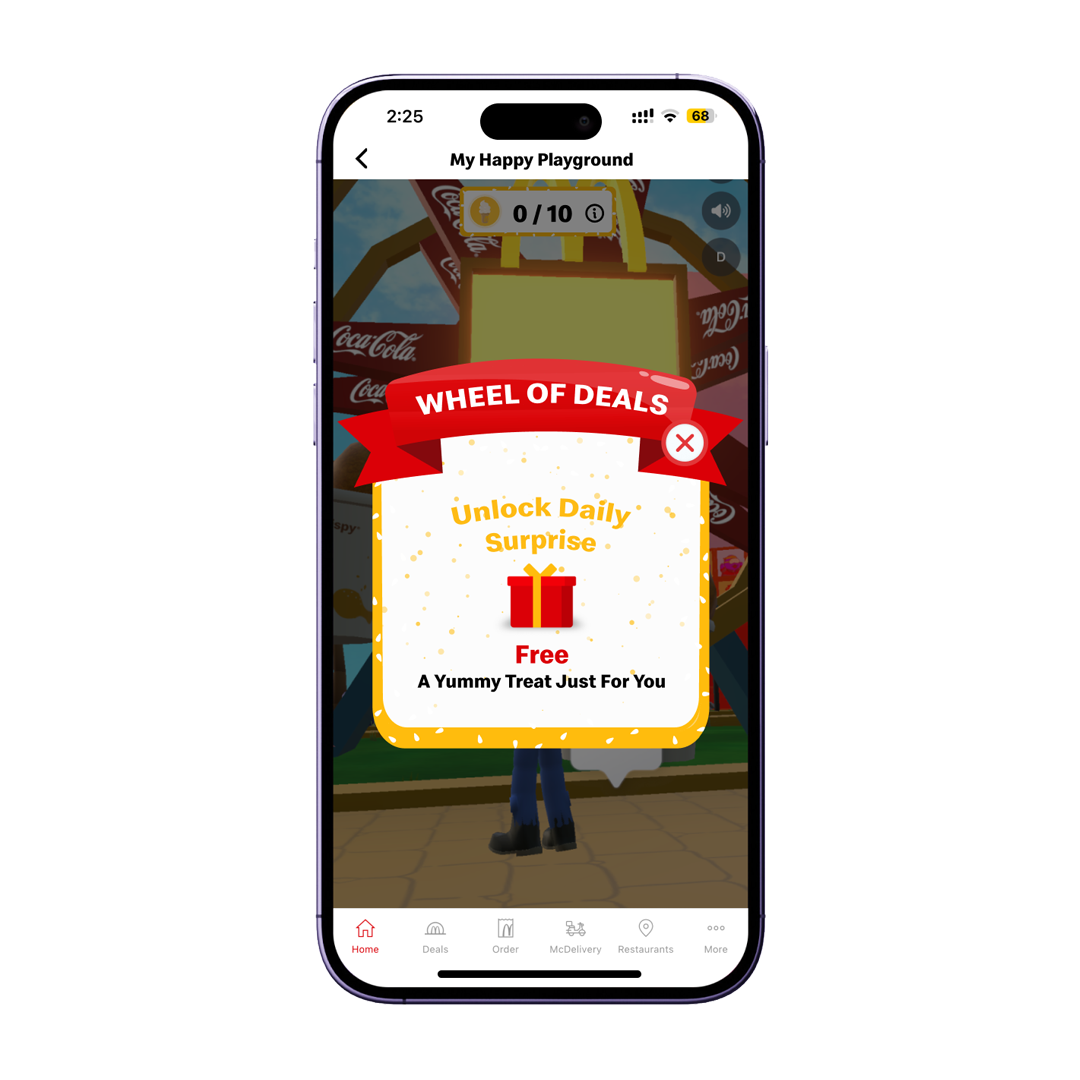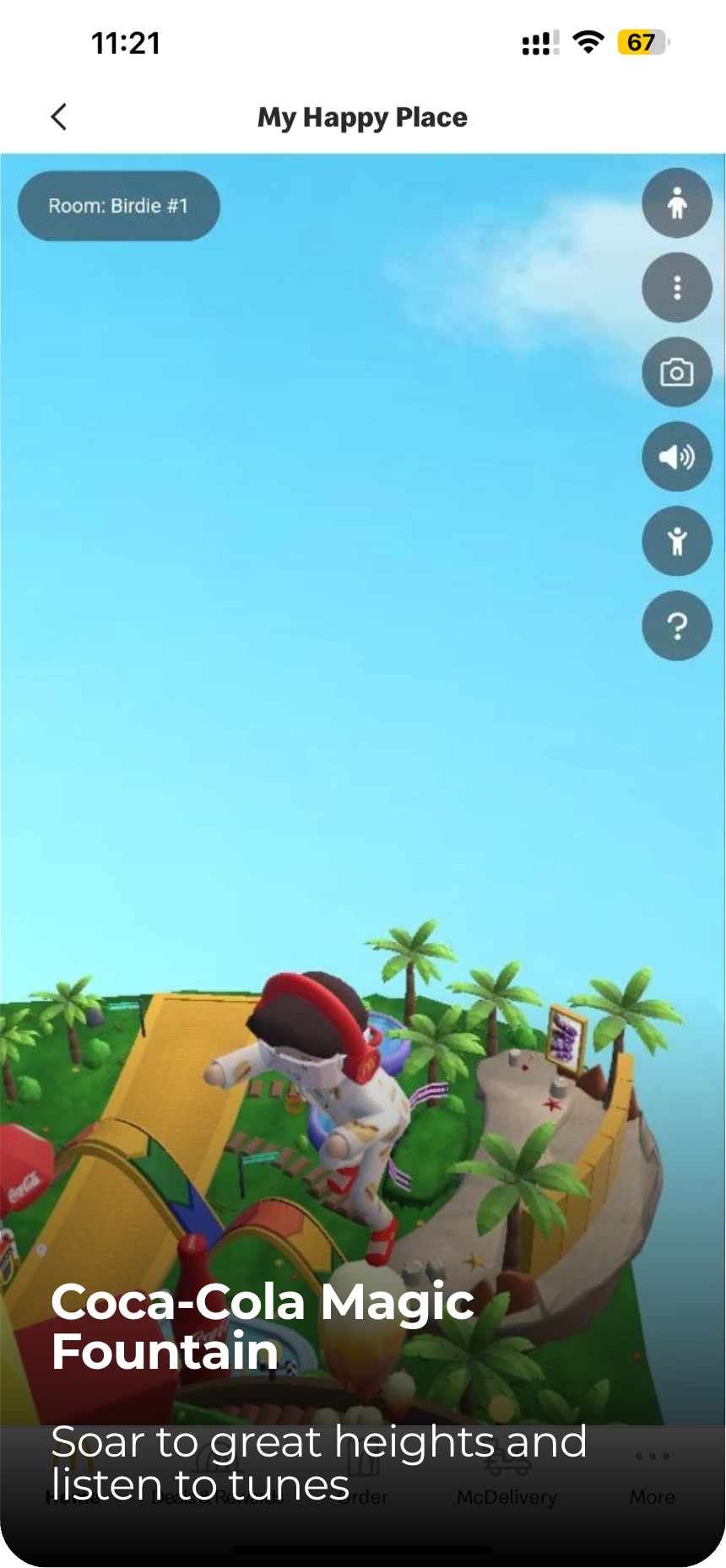 My Happy Place functions as an always-accessible brand universe where digital engagement drives real-world value. Users can craft virtual burgers, design personalized McDonald's restaurants, and explore interactive features like the Slide-Thru, Happy Van, Postbox, and Coca-Cola Magic Fountain.