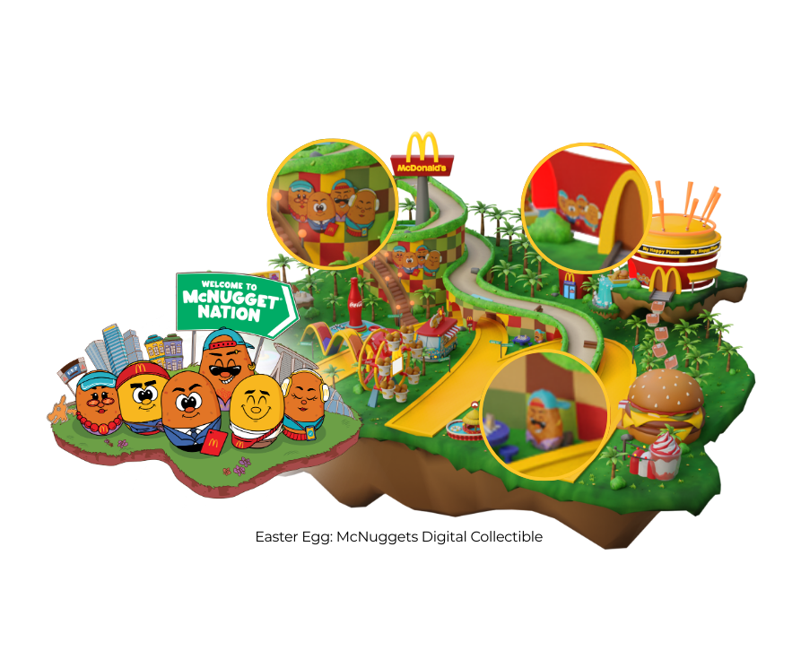 Hidden McNugget-themed Easter eggs were integrated throughout the My Happy Place that served dual purposes: complementing the physical campaign while hinting at the upcoming collectible release. This approach addressed community demand for expanded access while demonstrating how My Happy Place could flex alongside McDonald's marketing calendar, creating a repeatable model for future campaign integration.